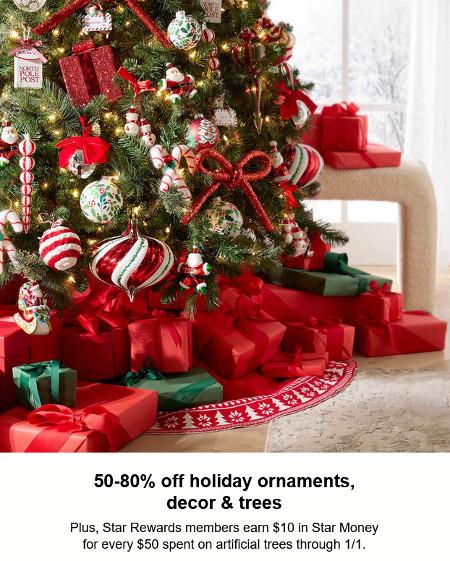 Shop in store and get 50-80% off holiday ornaments, decor & trees.