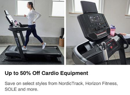 Act fast! Shop in store and get up to 50% off select cardio equipment from NordicTrack, Horizon Fitness, SOLE and more.