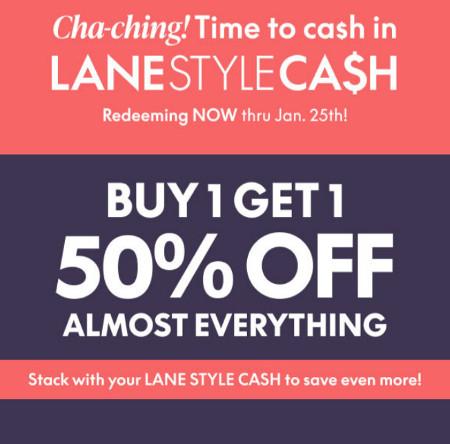 Buy one get one 50% off clothing, accessories, sleep & swim. Valid in Lane Bryant stores 11/16 through 11/17/2026. Offer valid on as marked clothing, accessories, sleep & swim. Excludes clearance & third-party brands (e.g., Skechers & Lemon). "BOGO" discount applied to item(s) of equal or lesser value before tax. Though charges will be as stated, receipt may reflect return value, which is prorated as a courtesy. To receive full amount paid, both full-price and discounted items in the BOGO must be refund-eligible and returned per return policy. Not combinable with coupons or other discounts unless otherwise stated.