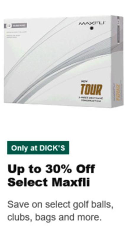 Don't miss this! Shop in store and get up to 30% off select Maxfli golf balls, clubs, bags and more.