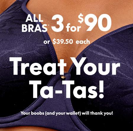 Get it now! Shop in store and get all bras 3 for $90 or $39.50 each.