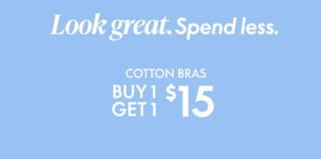 Look great, spend less! Shop in-store and get cotton bras at buy 1, get 1 for $15.