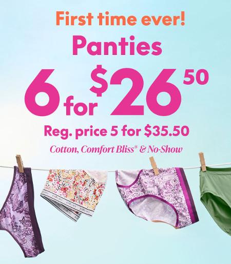 First time ever! Shop in store and get 6 for $26.50 panties.